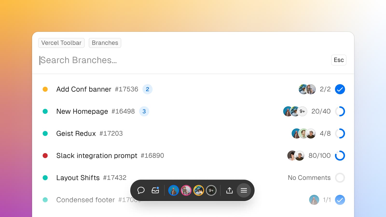 on Windows) and select branch switcher. You’ll see your team’s branches sorted to highlight those with recent activity or unread comments. Then, select a branch to switch to that deployment.