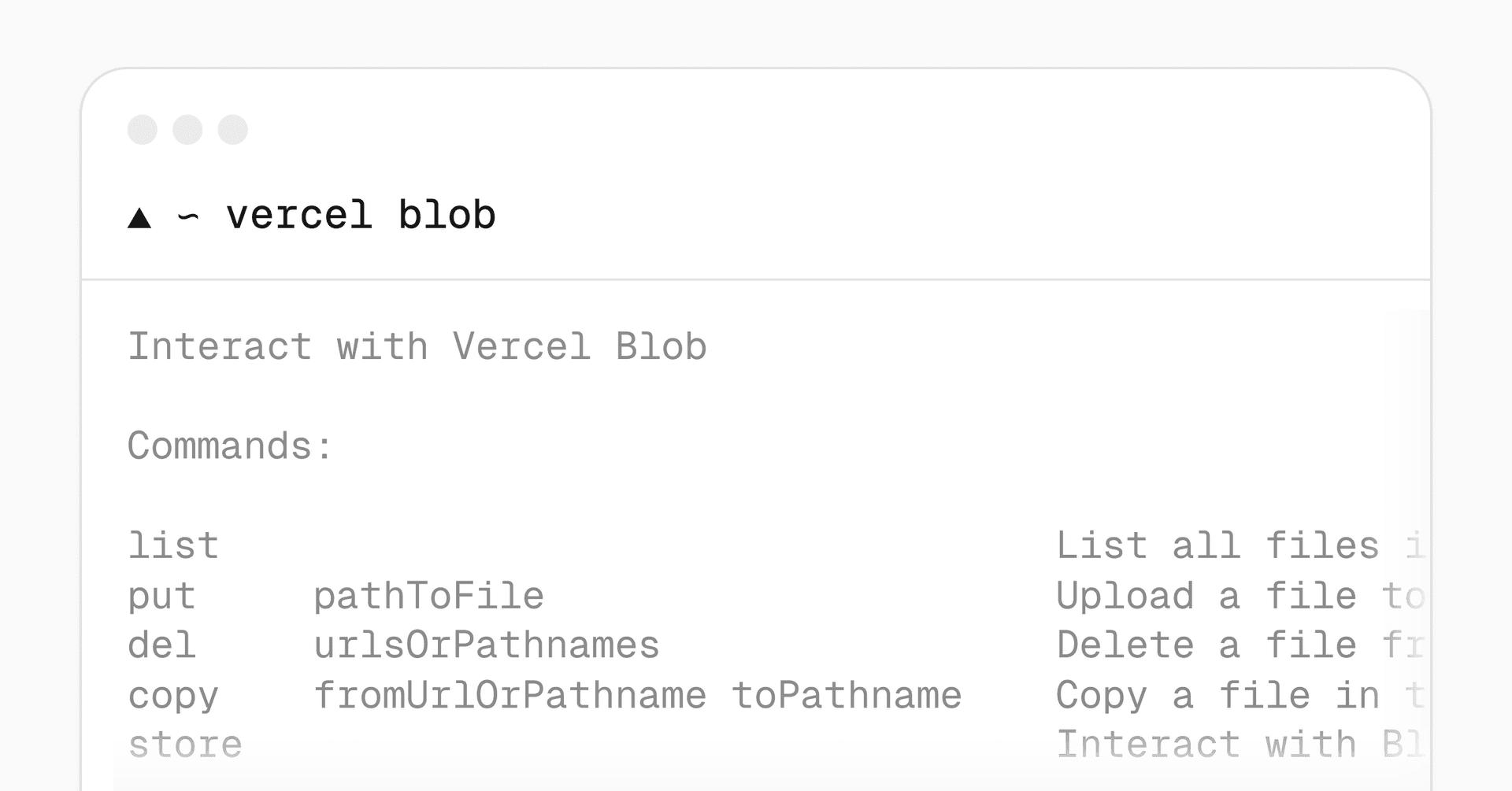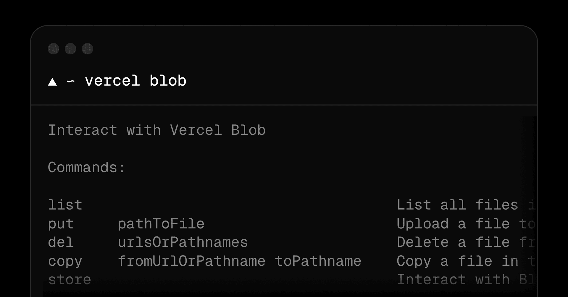 Learn more about the Vercel Blob CLI and Vercel Blob.