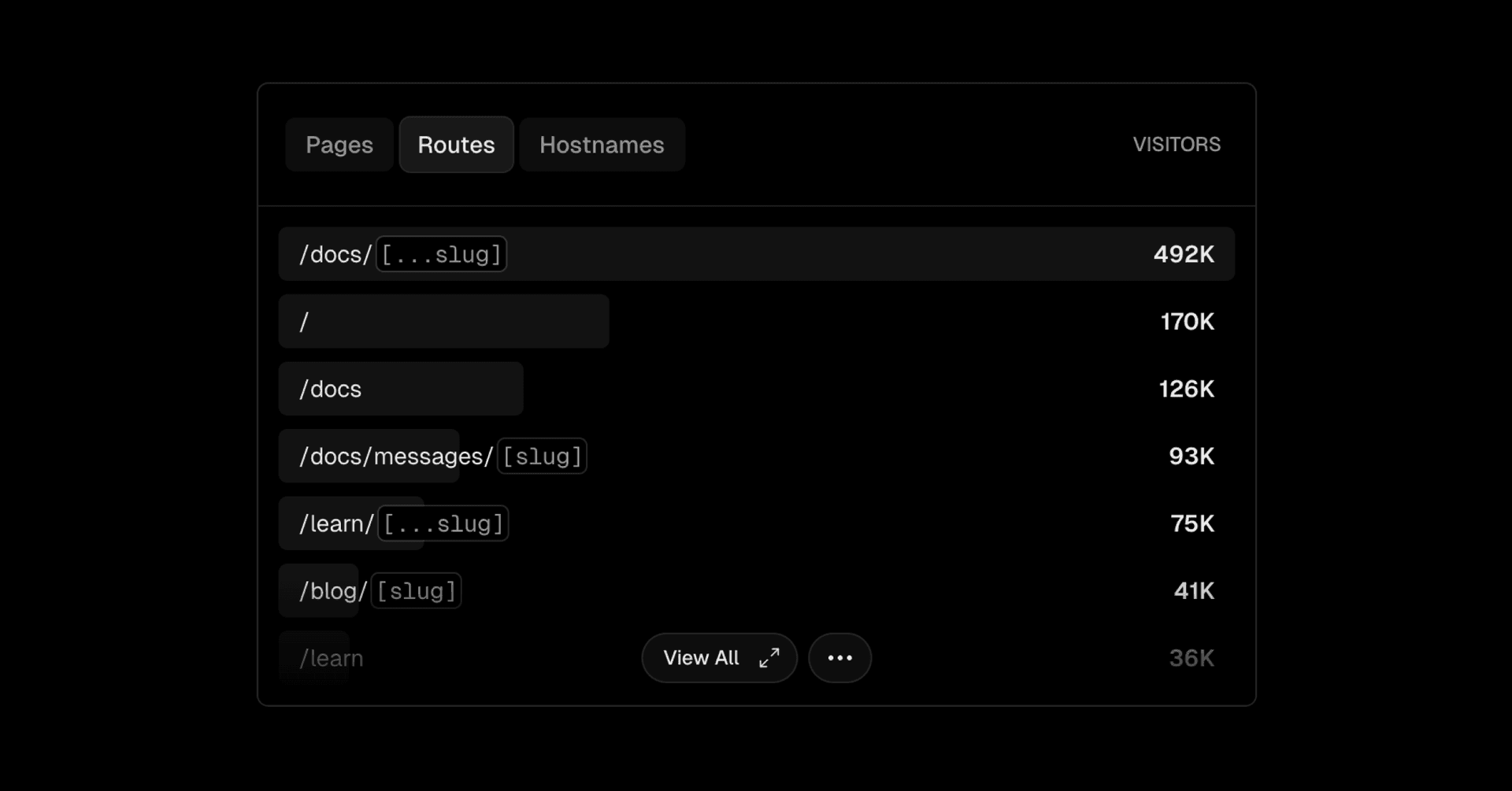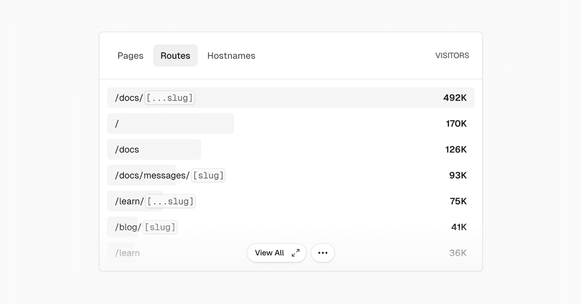 With the 1.4.0 release of @vercel/analytics, you can see route-level insights when you filter in Web Analytics. This update includes: