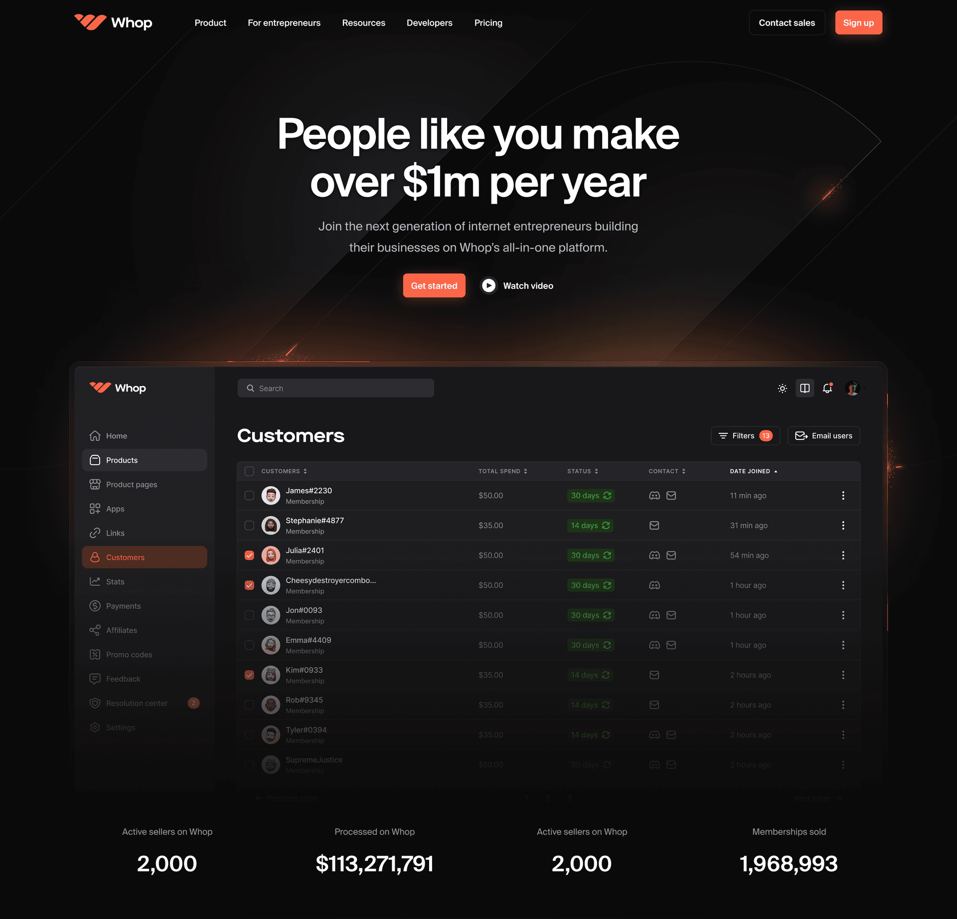 At Whop, our mission is to make everyone an internet entrepreneur. To match the pace of the ever-evolving web, we are successfully leveraging the Vercel ecosystem, including Next.js and Vercel, to build software incredibly quickly, leading to rapid growth.
