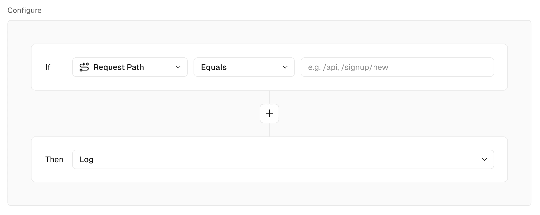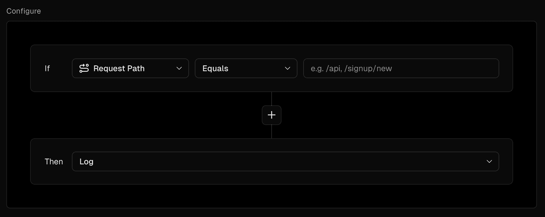 - For the Then action, you can leave the Default (429) action or choose between Log, Deny and Challenge