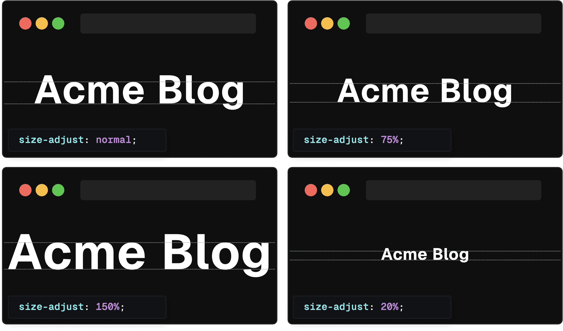 scales all metrics associated with the font by a specified percentage. By adjusting the size to match the web font, the text size will remain (roughly) the same even if the font is swapped from the fallback to the web font. This can help prevent unexpected changes in the page layout.