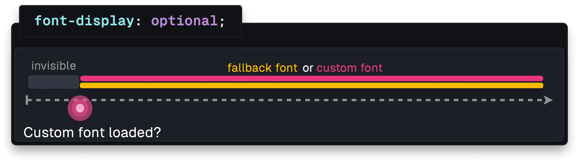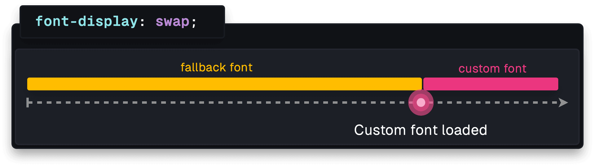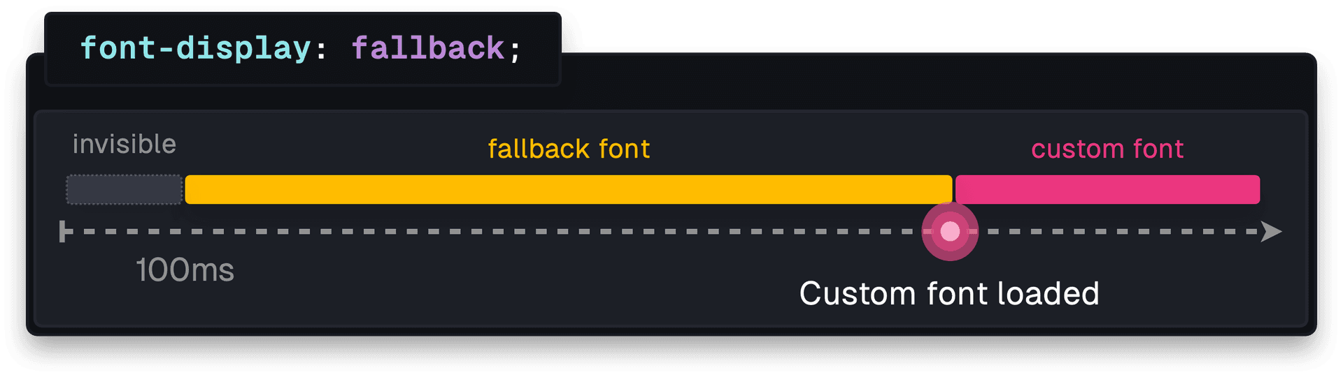 lets the browser to decide whether to use the web font based on factors like network speed. If the font is cached and loads within 100ms, the custom font is displayed. Otherwise, the fallback font remains.
