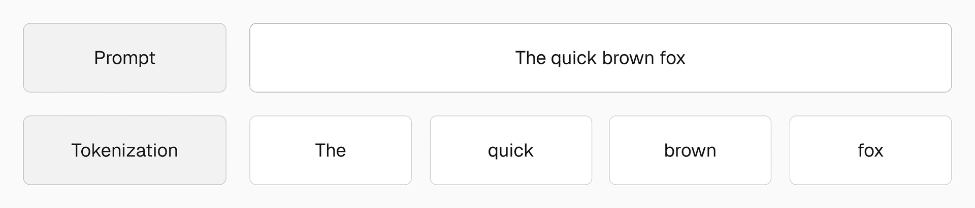 Prompt "The quick brown fox" is tokenized into ["The", "quick", "brown", "fox"].
