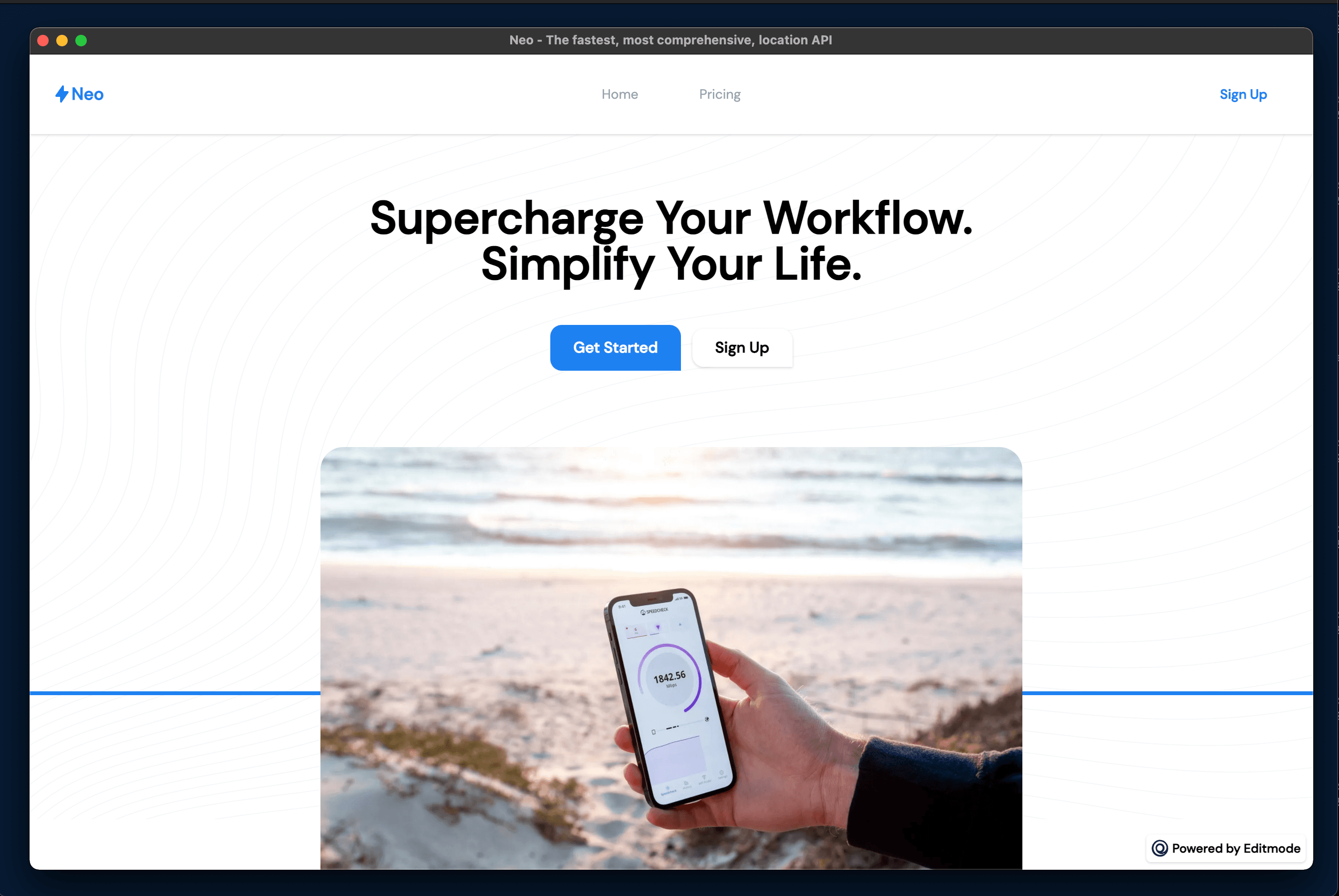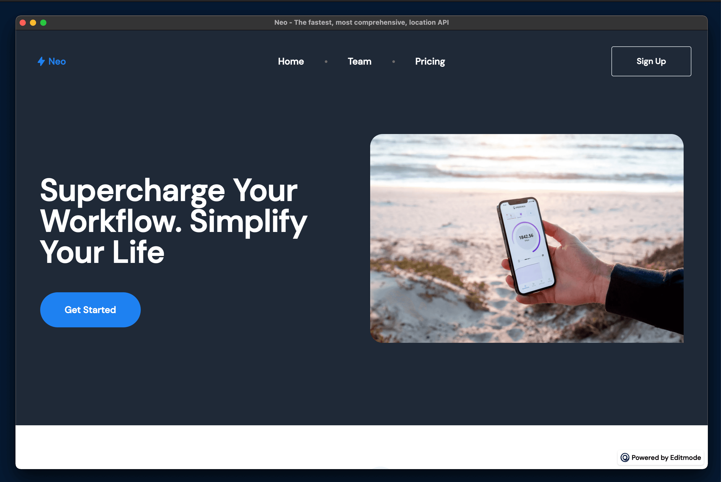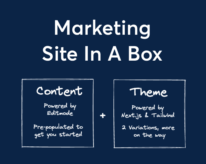 This integration lets you get started with one of our marketing website templates (built on top of Nextjs) with a predefined content structure (powered by Editmode) that can be immediately updated and adapted to your copy via inline editing directly on your new page, or the Editmode Content Hub, the admin panel for content management.