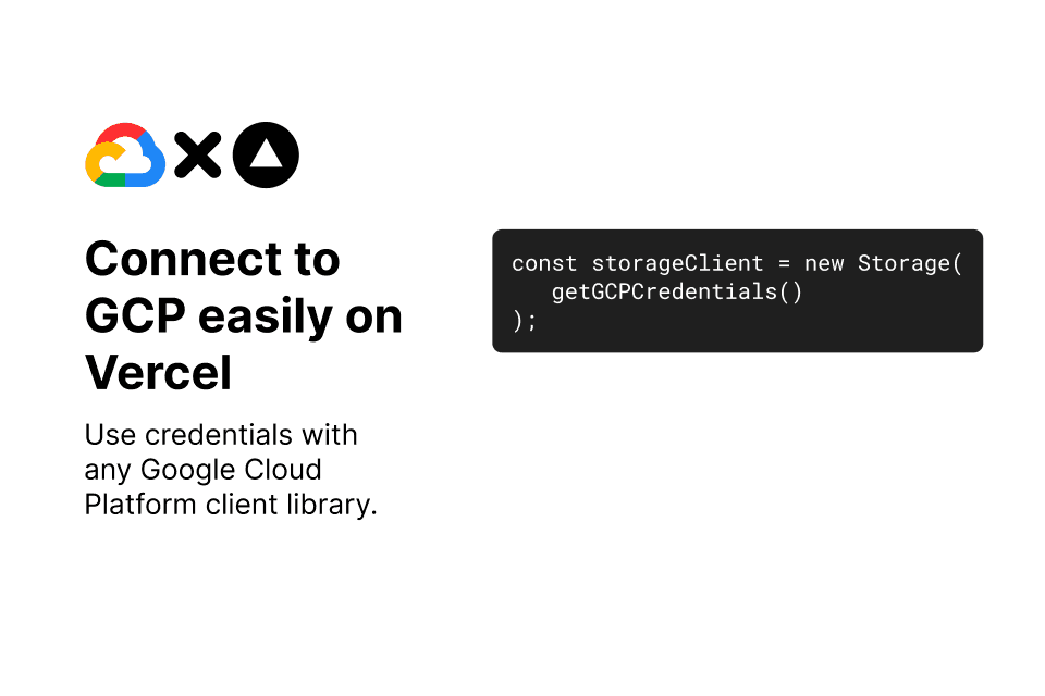 As developers using Vercel, we've always come across the need to add credentials to enable Vercel-hosted apps to talk to GCP. This is not a trivial process, since GCP works with JSON file credentials rather than simple environment variables. That's why we've built this integration to help you connect Vercel to GCP with just a few clicks.
