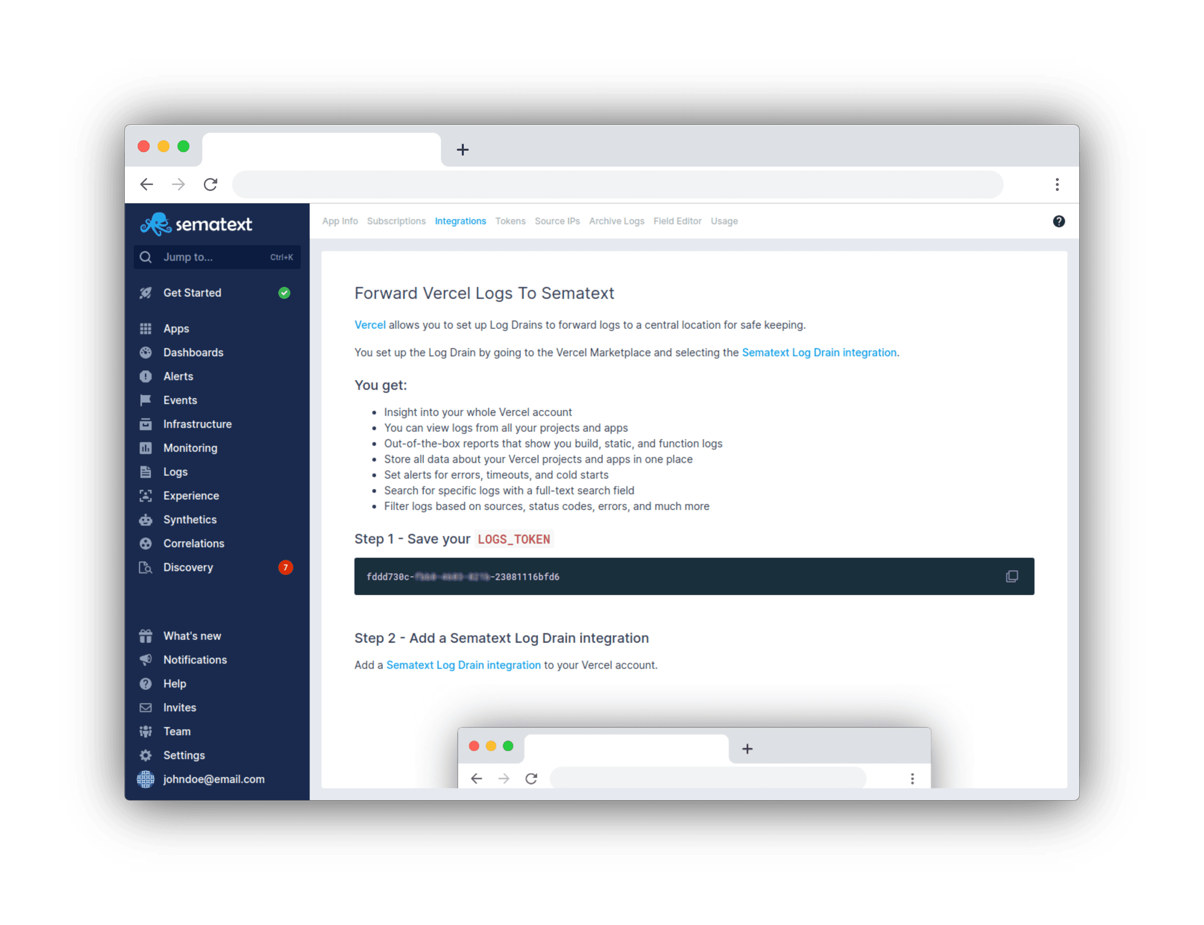Send logs from your Vercel apps to Sematext for easy debugging and troubleshooting.