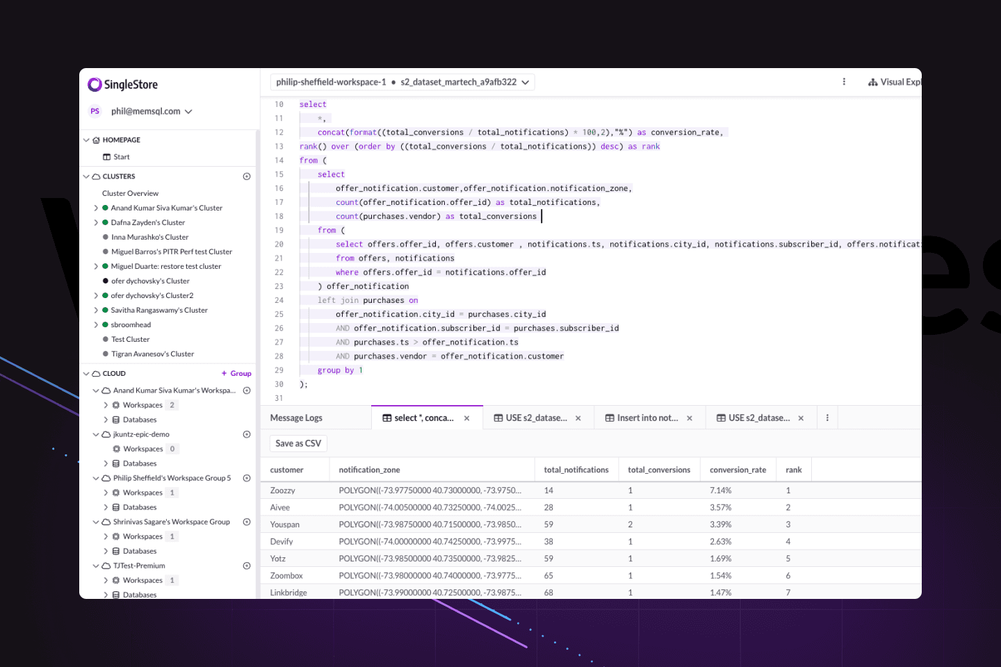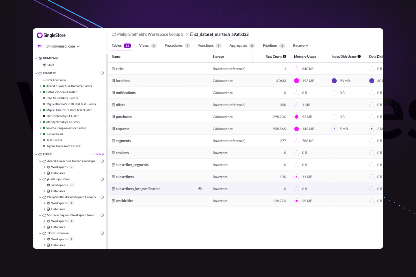 SingleStoreDB is a scalable cloud database for data-intensive applications, and it can be hosted on AWS, Azure or GCP. Its engine can successfully handle operational and analytical workloads at the same time.