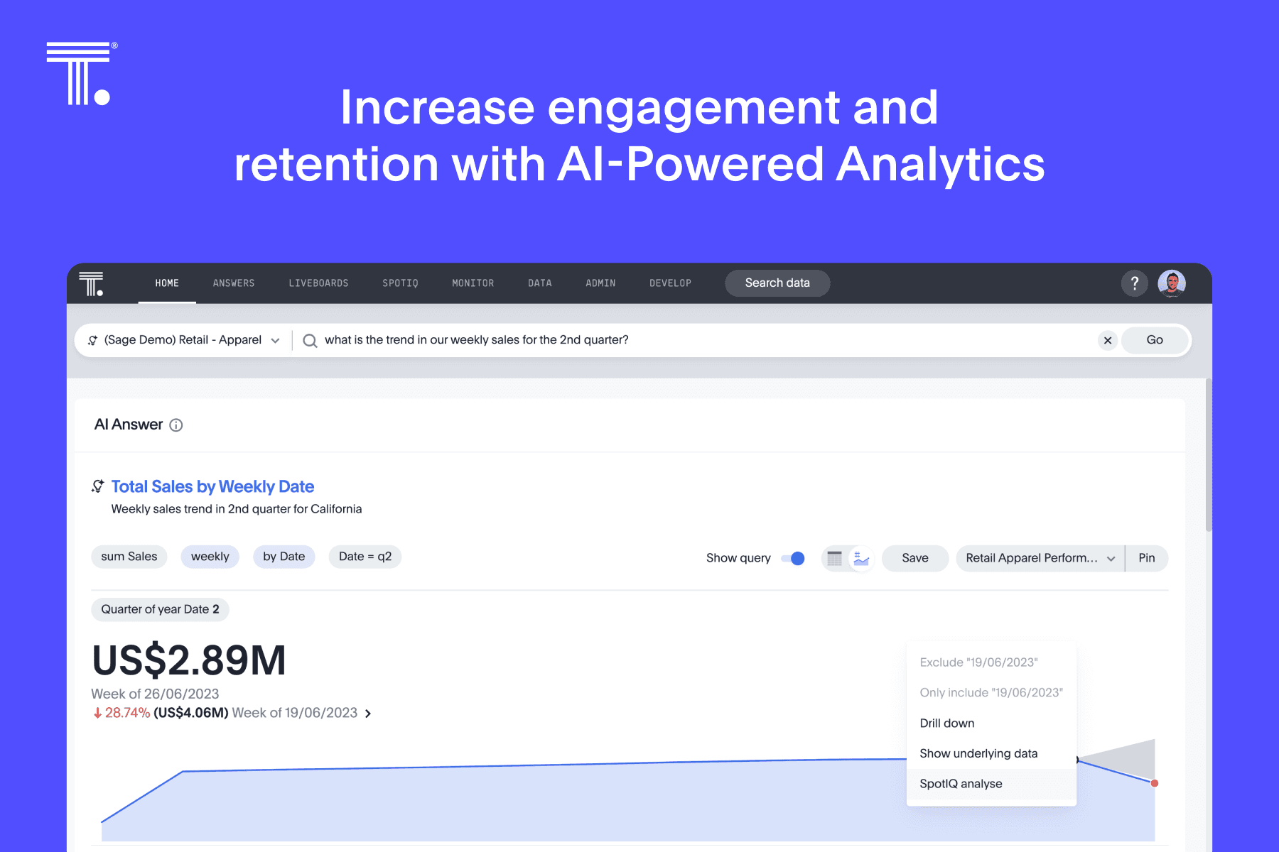 - Embed ThoughtSpot's Natural Language search via our SDK.