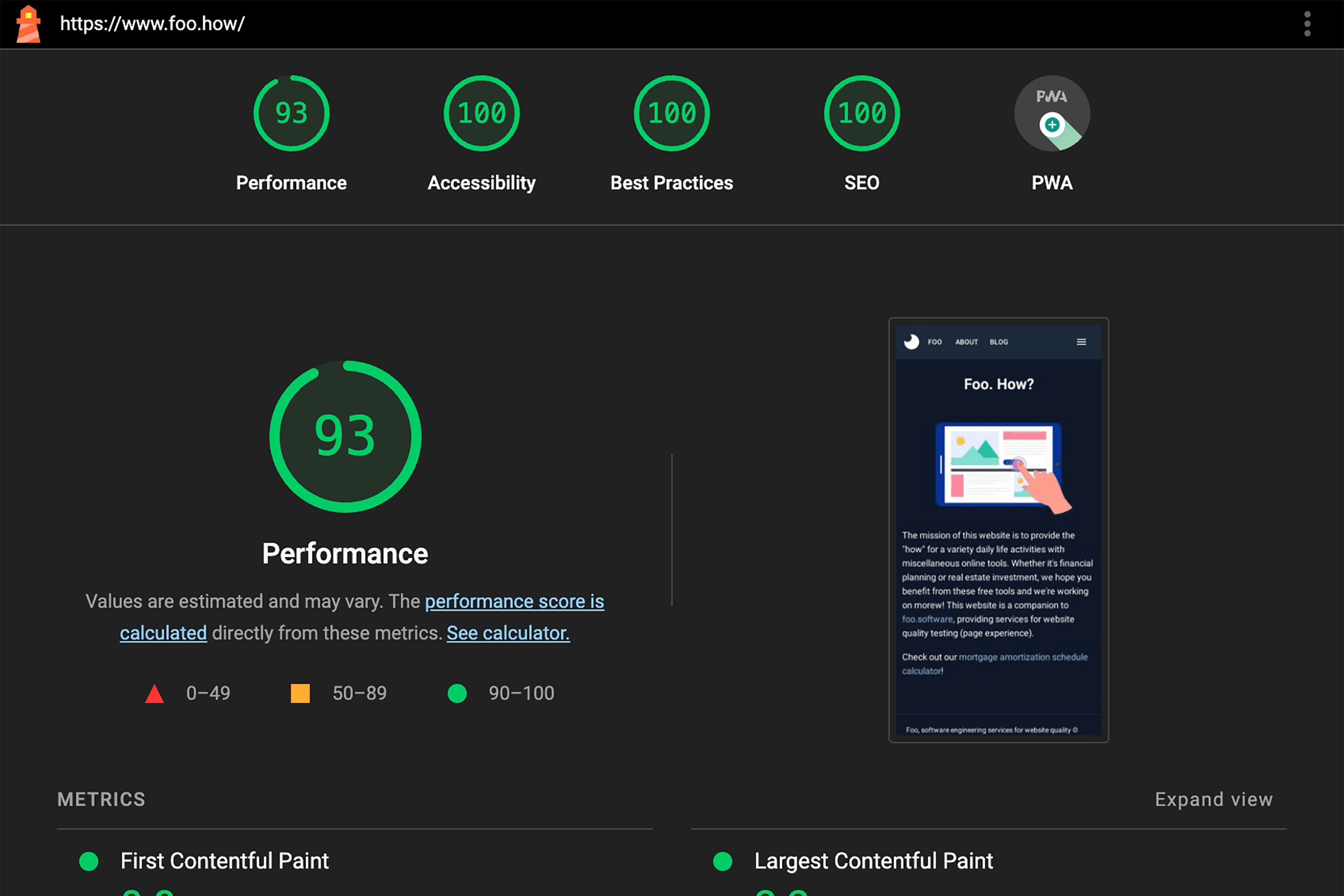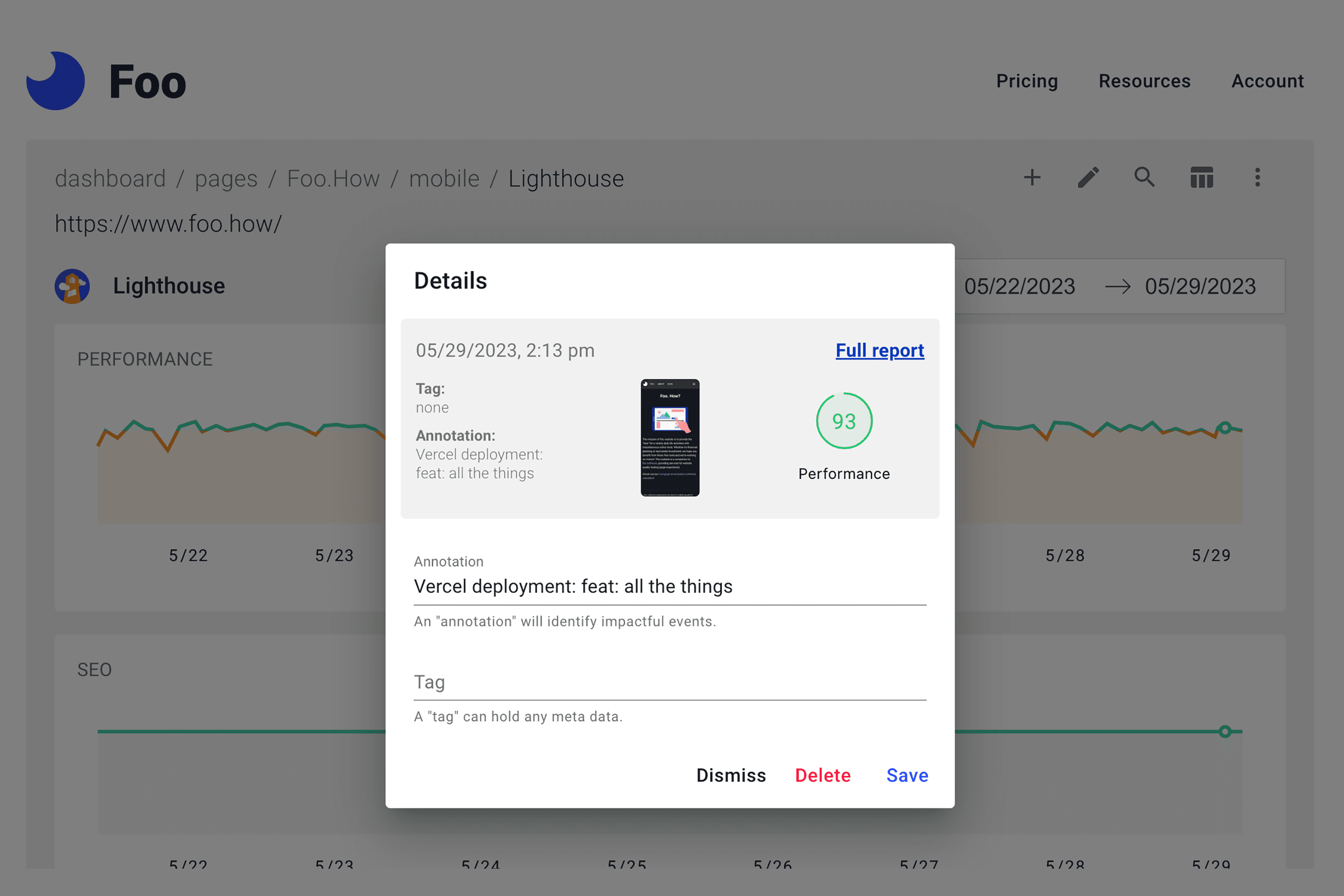 - On every successful Vercel production deployment, Foo will run both mobile and desktop Lighthouse audits against all pages you've added on Foo matching the production domains you've specified during setup.