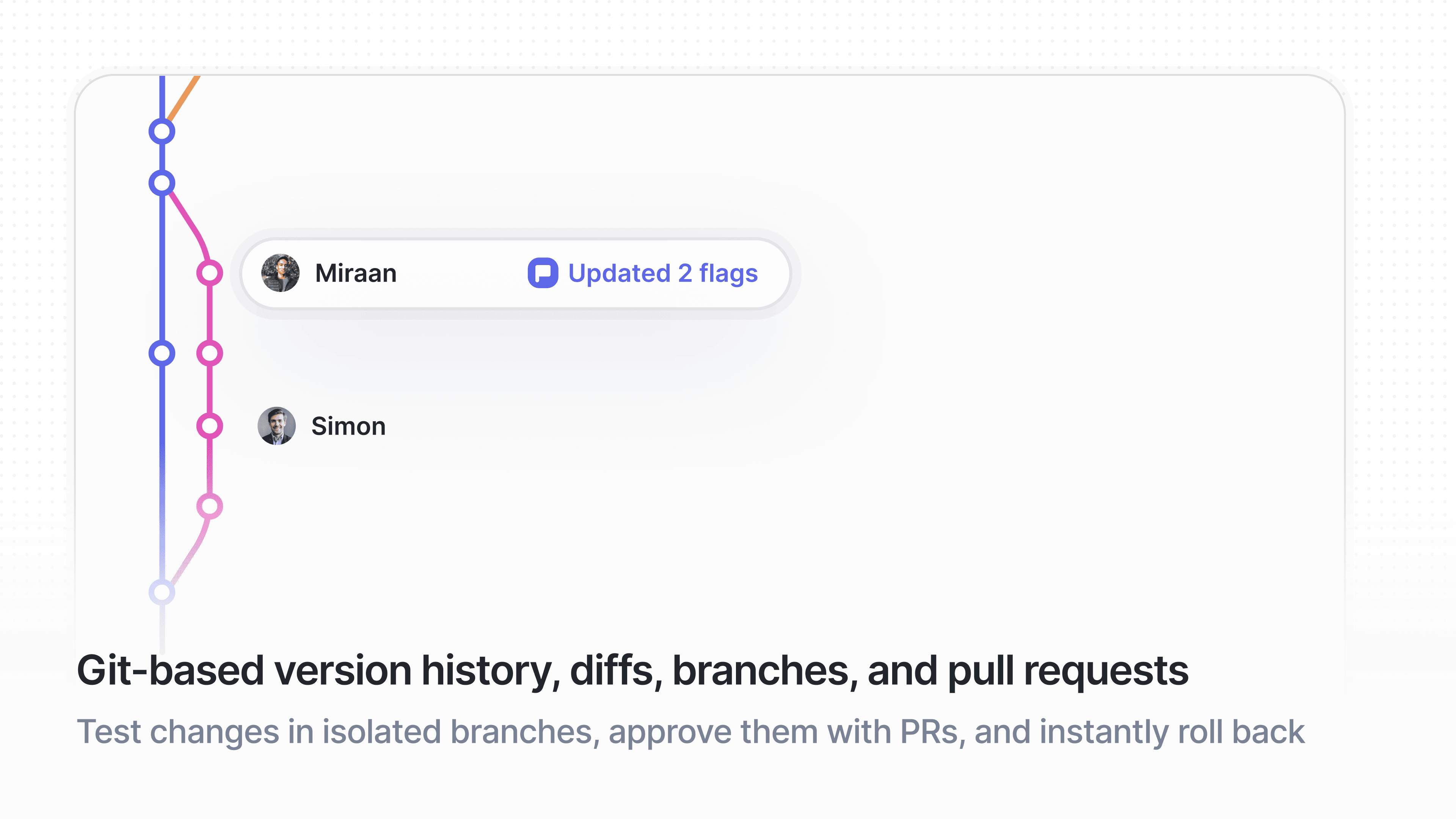 • Config-first — Scale from simple flags to rich app configuration for content, pricing, permissions, and beyond.