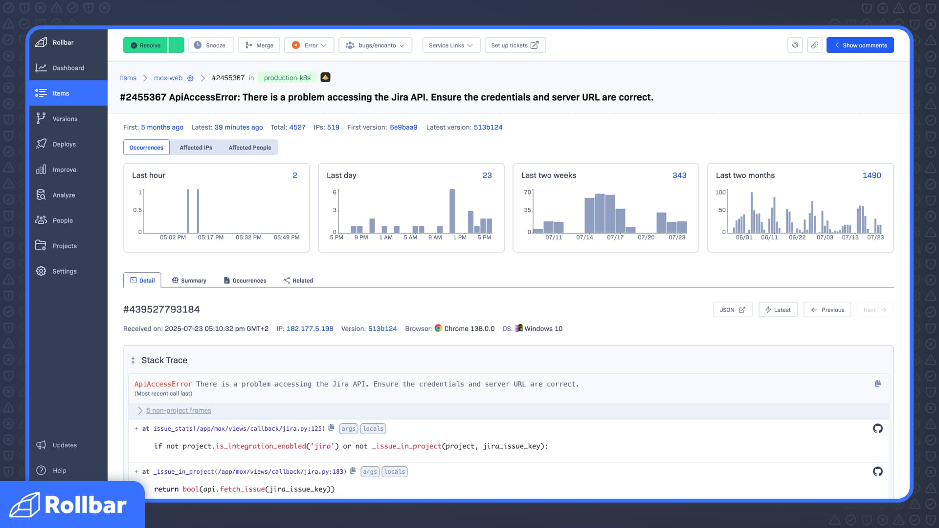 Vercel lets you deploy when you are ready. Rollbar tells you if what you deployed actually worked. No digging through logs. No waiting for user complaints. If a release introduces a problem, Rollbar flags it at the code source and ties it directly to the deploy. You stay fast without being reckless.