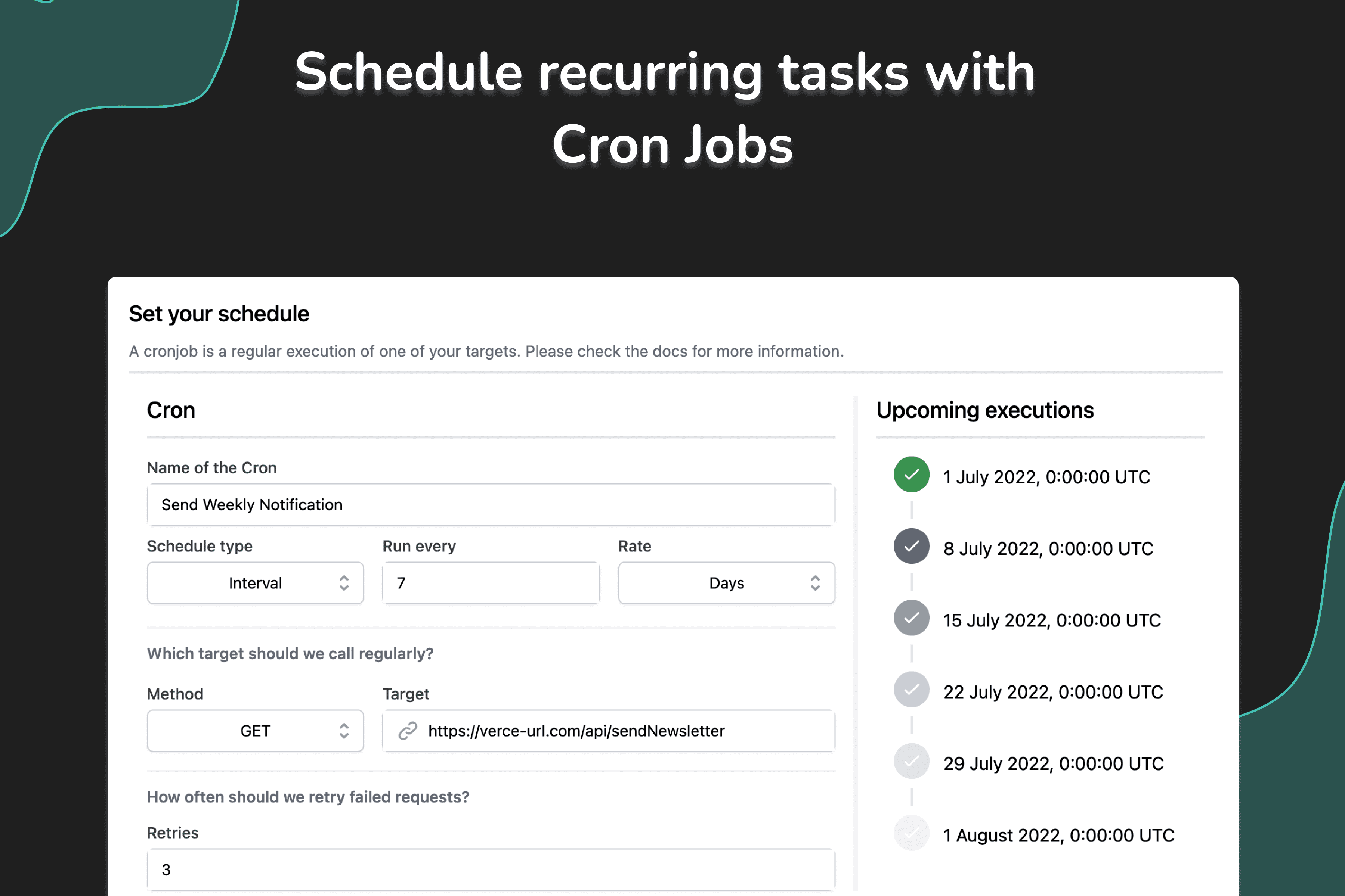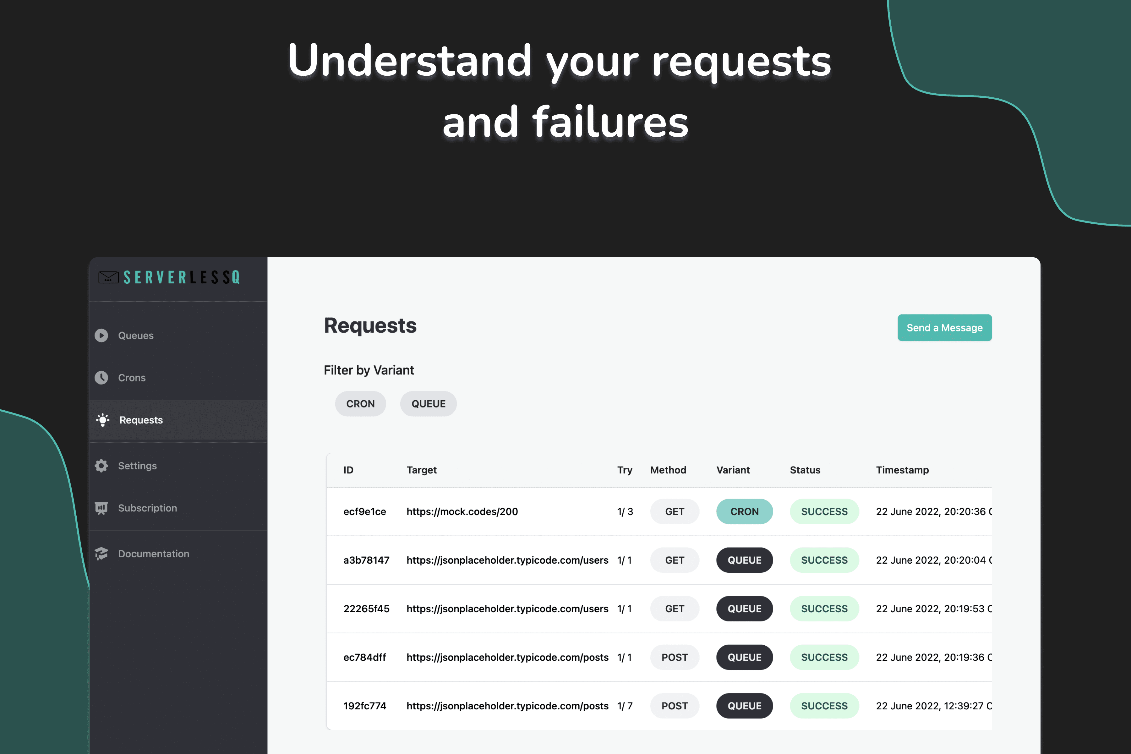 SERVERLESSQ_API_TOKEN: The token you need to authenticateWith these you can simply start queueing your requests and creating CRON jobs.