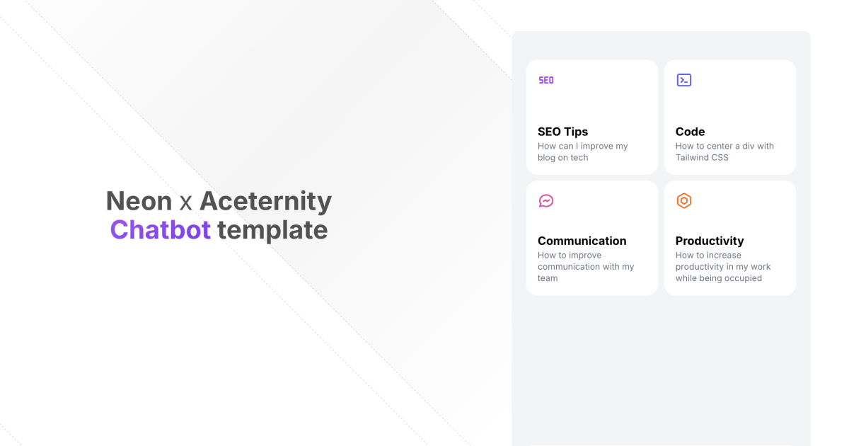 A modern, interactive chatbot template built with Next.js, AI SDK, Aceternity UI, and Neon's serverless Postgres.